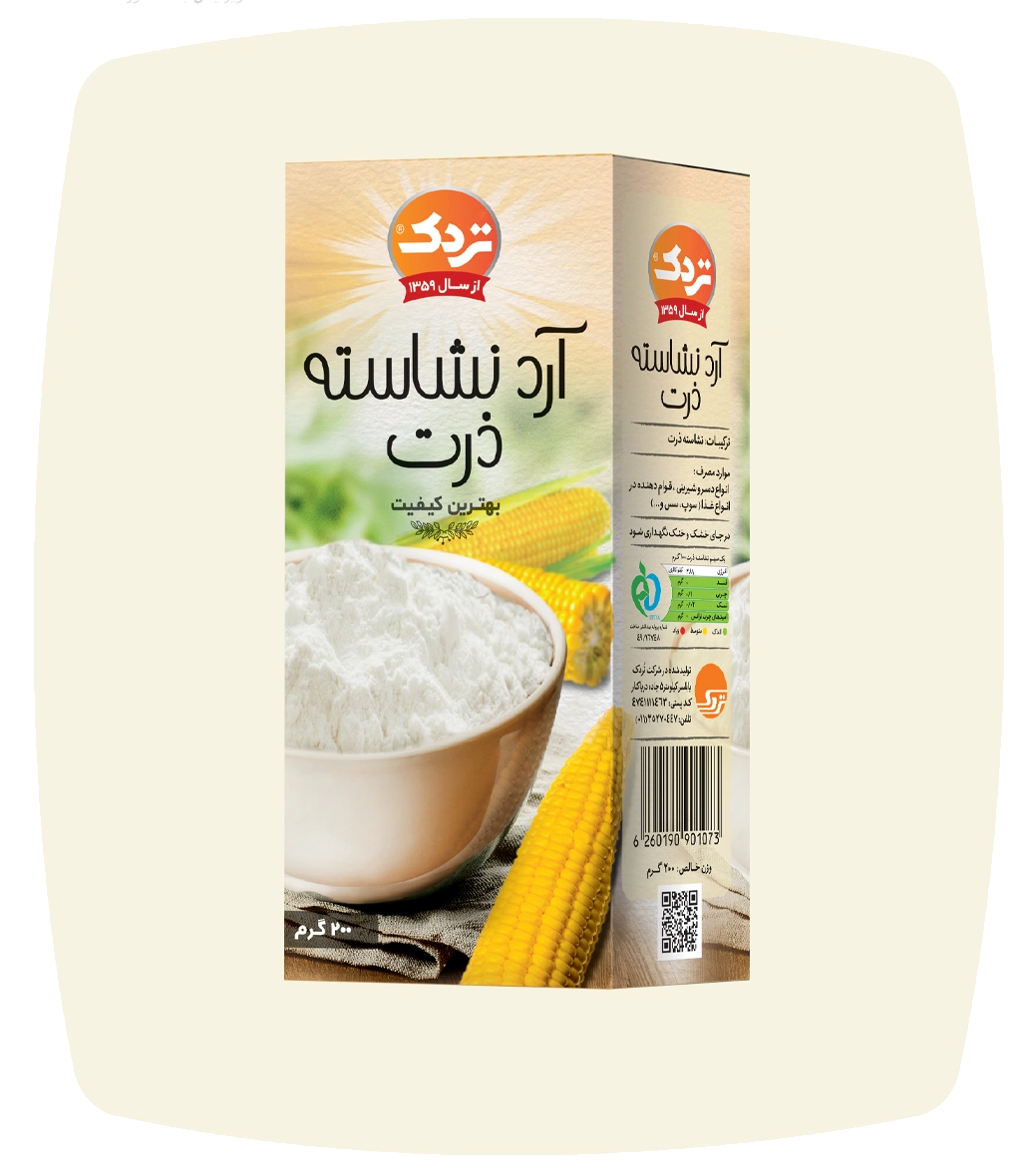 موارد مصرف : انواع دسر و شیرینی، قوام دهنده در انواع غذا (سوپ، سس و …)